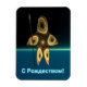 Uma imagem fractal em tons castanhos sugerindo um caçador Inuit altamente estilizado, vestindo roupas tradicionais de pele, segurando um arpão com cabeça de marfim. A imagem é sobreposta a um fundo que representa o inverno polar escuro. "S Rozhdestvom" aparece em azul e branco brilhantes.