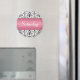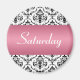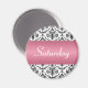 O imã "Dias da Semana" de sábado com uma faixa rosa sobre o damasco preto e branco. Organize qualquer conselho de geladeira ou ímã com este ímã e os outros ímãs correspondentes que completem o conjunto. Cada um vendido separadamente, sem ordem mínima. Escolha seu ímã de tamanho.