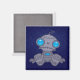 Imagem vetorial de um robozinho fofo, mas triste, com olhos azuis sentados no chão.