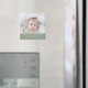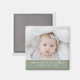 Esta imã de geladeira apresenta um roteiro divertido com o estilo "Olá, Bebê" na borda inferior da sua foto do seu próprio bebê acima de um fundo verde sábio com o nome do seu bebê e data de nascimento em uma fonte branca moderna e clara impressa. ,