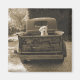 Saia do Dodge de Jim Dratfield. Esta fotografia sépia é de um cão fofo sentado alegremente na parte de trás de um caminhão.