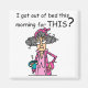 Sair de t-shirt do humor da cama, canecas, cartões, etiquetas, bolsas, ímãs, chaveiro, ornamento, mousepads, travesseiros, Tag da bagagem, e outros roupa e presentes da atitude da manhã para qualquer um que não é exatamente um fã de acordar cedo! Stella em seus nightgown e veste cor-de-rosa pergunta-me "saiu da cama esta manhã para ESTA?".