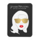 Coordena-se com o Salão de Cabelo, Blogueiro de Estilo, Modelo de cartão de negócios Beauty Girl III até 1201AM. Uma ilustração em negrito, preto e branco de uma garota com lábios vermelhos e óculos de sol dourados torna-se uma mascote atraente neste ímã na moda para salões de cabelo e estilistas. Ilustração e design © 1201AM CREATIVE