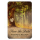 Ímãs elegantes de salvar a data do casamento ao ar livre com um lago romântico em um cenário florestal, uma velha árvore rústica com um coração esculpido e suas iniciais dentro, e um modelo de texto editável.