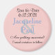 Convite de casamento Salve a Data com belo fundo rosa pastel e detalhes do evento em texto preto. Nomes da Noiva e do Noivo em azul claro. Clique para personalizar e editar as cores do fundo ou do texto com códigos hexadecimais, ou estilo de fonte. Desenhos por TamiraZDesigns.