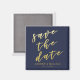 NewParkLane - Magnet, com 'Salvar a data' em tipografia elegante de script de folha de ouro falso, contra um fundo azul marinho. Fácil de personalizar no Zazzle com seus próprios nomes, data ou outro texto para um design personalizado. Todos os estilos de texto, cores, tamanhos podem ser modificados para ajustado das suas necessidades. Você também pode alterar a cor do plano de fundo para qualquer cor que você preferir. Um presente elegante para lembrar seus convidados da data do seu casamento! Verifique esta Coleção de Script de Pincel Dourada para itens correspondentes. Você tem desejos pessoais específicos de design? Sinta-se livre para me contactar.