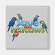 Cinco arararas bonitinhas e adoráveis em torno de uma declaração de conservação: Salve as arararas. Você pode personalizar este presente. Mova a design, mude a cor ou o estilo do fundo, adicione texto ou imagens — torne-a sua!