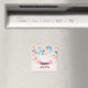 Um ímã de salvar data de aniversário com uma borda floral elegante. Flores e folhas em rosa e verde.