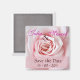 Uma bela e perfeita rosa rosa faz uma Imã salve a data bonita e perfeita para anunciar seu casamento aos seus amigos e família