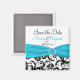 Esta Imã salve a data preta e branca tem uma fita azul-aqua IMPRESSA e broche de joia de diamante IMPRESSO que seria perfeito para um casamento sobre o aqua e o tema negro.***Se você mudar a forma e/ou o tamanho do ímã, ou se você mudar as fontes, ou o tamanho da fonte, algum do design e/ou texto pode ser cortado. Tudo será impressão como você vê no seu monitor. Não verei mudanças que você faz, e Zazzle NÃO corrigirá nada (erros de digitação, alinhamento incorreto, etc.). O texto é personalizável. Se precisar de ajuda para este produto, envie-me um e-mail ANTES de fazer seu pedido. Se você precisar de outros itens correspondentes, envie um e-mail para niteowlstudio@gmail.com