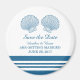 Conchas náuticas elegantes e clássicas Imãs salves a data com um par de conchas simples e uma série de faixas em azul e branco marinho escuro. Este tema de praia náutica, exceto a data, pode ser facilmente personalizado com seus detalhes de casamento. Para obter mais opções de personalização, clique no botão Personalizar Ti.