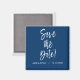 Imã salve a data de Script com Letra marinho Azul e Branco. O texto deste ímã de script de pincel com letra manual pode ser atualizado e personalizado com seu nome.