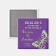 Íman moderno e elegante. Apresenta uma borboleta em combinação de cor verde e roxa. Trendy e design de captura de olhos. Excelente para o verão, primavera, jardim ou casamento ao ar livre. Adicione o seu próprio texto para salvar a data. Este design está disponível em outras cores.