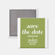 Imã salve a data de charme em verde-oliva e branco com design de tipografia química. Esta tendência e imã salve a data moderna é fácil de personalizar com seus detalhes de casamento. Para obter mais opções de personalização, clique no botão Personalizar Ti.