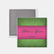 Imã salve a data chic com fundo verde damask e banda rosa acentos
