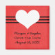 Diversão e encantadora Imã salve a data moderna com fundo vermelho escuro e coração doce e borda listrada. Esta simples e ousada imã salve a data é perfeita para anunciar seu casamento chic e moderno. Fácil de personalizar, basta adicionar os detalhes do seu casamento nos campos de texto fornecidos. Clique em "Personalizar" para encontrar opções adicionais de personalização.