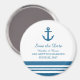 Imã salve a data de Âncora Náutica elegante e clássica com uma simples âncora de barco e uma série de faixas em azul e branco marinho escuro. Este tema de praia náutica, exceto a data, pode ser facilmente personalizado com seus detalhes de casamento. Para obter mais opções de personalização, clique no botão Personalizar Ti.