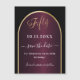 Um cartão magnético Save the Date para uma festa de aniversário 50th. Um fundo preto e arrojado, decorado com um arco de ouro falso. Personalize e adicione uma data e seu nome. O texto: Cinquenta e Salvar a Data é escrito com um script de estilo com letra de tendência grande.