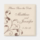 Mande esta guardar o imã do lembrete de data junto com o anúncio do seu casamento para ajudar os seus amigos a lembrarem-se do seu dia de casamento. Este imã de lembrete de casamento apresenta espirais e cotovelos castanhos em um fundo creme. Você pode personalizar facilmente o texto na página de pedido do produto. Certifique-se de verificar os convites de casamento, selos postais personalizados e outros produtos de coordenação na nossa Coleção de Casamento de Curls Florais - Brown.