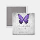 Imã salve a data elegante e simples com borboleta roxa contra fundo de cinza. Esta design é uma escolha única para anunciar um casamento moderno. Fácil de personalizar com seus detalhes de casamento. Clique em "Personalizar" para encontrar mais opções de personalização.