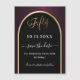 Um cartão magnético Save the Date para uma festa de aniversário 50th. Um fundo preto e arrojado, decorado com um arco de ouro falso. Personalize e adicione uma data e seu nome. O texto: Cinquenta e Salvar a Data é escrito com um script de estilo com letra de tendência grande.