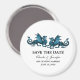 Perfeito para um sofisticado jogo de mesa de fantasia O casamento temático é esta Imã salve a data nerd e única dos Dragões Elegantes apresentando um par vibrante de dragões azuis. Fácil de personalizar, basta adicionar os detalhes do casamento nos campos de texto fornecidos. Clique em "Personalizar" para encontrar mais opções de personalização.