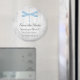 Imã salve a data elegante e simples apresentando uma libélula azul contra um fundo de nuvens de cinza. Esta design é uma escolha única para anunciar um casamento moderno. Fácil de personalizar com seus detalhes de casamento. Clique em "Personalizar" para encontrar mais opções de personalização.