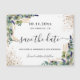 Um ímã de tendência Salve a data para uma festa de aniversário 40th (ou qualquer idade). Um fundo branco de na moda, decorado com eucalipto, verde, folhagem de ouro e pó de dourado falso. Personalize e adicione uma data, nome e texto. O texto: Salvar a Data é gravado com um script de estilo com letra de tendência grande com alternâncias.