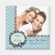 Anuncie seu futuro casamento com nossa Foto Salve o Anunciante de Data com uma bela cor damasco de diamante azul macio com a folha preta com 2 aves de amor. Basta adicionar suas informações e fotos do casamento e você está pronto para ir! Carimbos de correio e selos de envelopes disponíveis em nosso compro