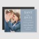 Trendy Dusty Blue Photo Save the Date Magnetic Card