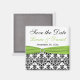 Esta imã salve a data preta e branca, com uma fita verde FAUX e broche de joias, combina com o convite de casamento mostrado abaixo. Se houver outros itens correspondentes necessários, envie seu pedido por e-mail para niteowlstudio@gmail.com.