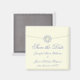 Esse personagem sofisticado e impressionante Casamento Salve o ímã de Anúncio de Data apresenta um fundo de marfim com um flap simulado no estilo de envelope e um brasão de cor prateada cercado com diamantes e pérolas. O texto dessa Imã salve a data está em uma maravilhosa sombra de azul projetada para elogiar o "brilho" dos diamantes.