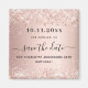 Uma Imã salve a data giratória e de tendência para uma festa de aniversário 40ª (ou qualquer idade). Um fundo de aparência metálica rosa-feminino, rosa-dourado falso, decorado com um confete rosa dourado. Personalize e adicione uma data e nome/idade 40. Letras rosa escuras de cor dourada. O texto: Salvar a Data é gravado com um script de estilo com letra de tendência grande.