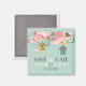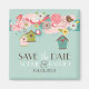 Ótimas ilustrações de dois pombinhos tocados em um galho com várias flores. Esta imã salve a data é perfeita para casamentos de verão ou primavera.