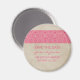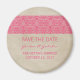 Imã salve a data rustica simples e elegante com papel texturizado vintage e uma borda doce e suave de padrão de renda em magenta. Fácil de personalizar, simplesmente adicione seus detalhes de casamento. Clique em "Personalizar" para encontrar mais opções de personalização.