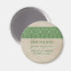 Imã salve a data rustica simples e elegante com um papel texturizado vintage parece fundo e um padrão de renda doce e suave em verde escuro. Fácil de personalizar, simplesmente adicione seus detalhes de casamento. Clique em "Personalizar" para encontrar mais opções de personalização.
