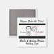 Um estilo retrô Salve o ímã de casamento de Data com um desenho de linha preta de uma noiva e noiva e um texto que diz "Salve a Data!" e "Ele perguntou! Eu disse sim!" Você pode adicionar facilmente sua data de casamento e nomes a esta Imã salve a data personalizável.