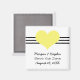 Simples e encantadora Imã salve a data cardíaca Mod apresentando uma banda tripla de listras e um coração querido em amarelo. Esta doce, mas minimalista imã salve a data é perfeita para anunciar um casamento moderno e elegante. Fácil de personalizar, simplesmente adicione seus detalhes de casamento. Clique em "Personalizar" para encontrar opções adicionais de personalização.