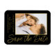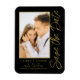 Salve a data em que o Na moda Dourado Script Modern Wedding Magnets apresenta um fundo preto com a sua fotografia personalizada. Personalize com seu texto editando o texto nas caixas de texto fornecidas. Projetado para você por ©Evco Studio www.zazzle.com/store/evcostudio