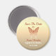 Borboleta de ouro rosa, moderna, elegante, única, com padrão floral combinado com o adorável lado de trás dourado brilhante. Chic, capricho, eterno aniversário de Quinceanera, salve o ímã de convite de data.