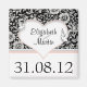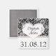imã para salvar a data belo design de estilo damasco com padrão floral, casal de pássaros de pomba e cor-de-rosa preto branco.