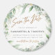 Este casamento salvou o íman de data que apresenta uma bela camada de eucalipto de aquarela - o precursor perfeito para um casamento de primavera ou verão!