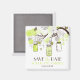 Ilustrações bonitinhas e caprichosas de jarros de mason verdes, pombinhos, flores e cordas cardíacas, todas empobrecidas em galhos de árvores. Esta imã salve a data divertida e romântica é perfeita para um casamento de verão ou primavera.
