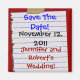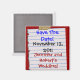 "Salvar a data!" em azul-negrito com a data em texto preto em uma nota escrita em uma folha de papel gravada em fundo vermelho. O texto de exemplo diz: "Casamento de Jennifer e Robert!" em vermelho. Mude facilmente as cores do texto para o seu gosto. Além disso, basta clicar em "Personalizar" e, em seguida, "editar" e "fundo" para alterar o fundo vermelho. Um ímã divertido que certamente será o lembrete perfeito para qualquer um. Fácil de personalizar o texto nas suas próprias palavras e naquele dia especial para não ser esquecido! Excelente para os próximos casamentos, aniversários, chás, reuniões, qualquer ocasião especial e salvar a data. Não se esqueça de salvar essa data!