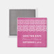 Imã salve a data boêmica moderna elegante e sofisticada, com uma única borda de espiral e um papel vintage, parecem fundo em magenta. Este na moda é perfeito para anunciar seu casamento com temas asiáticos ou boêmicos. Fácil de personalizar, basta adicionar os detalhes do casamento nos campos de texto fornecidos. Clique em "Personalizar" para encontrar mais opções de personalização.