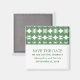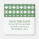 Imã salve a data moderna simples e elegante em verde escuro com um padrão deco de na moda. Esta imã salve a data chic é fácil de personalizar com seus detalhes de casamento. Clique em "Personalizar" para encontrar mais opções de personalização.