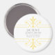Rico simples e elegante Imã salve a data ornamentais em amarelo e branco com uma sofisticada fronteira florescente ornamental estilo deco. Fácil de personalizar, basta adicionar os detalhes do casamento nos campos de texto fornecidos. Clique em "Personalizar" para encontrar mais opções de personalização.