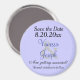 Elegante Salve a Data. Linda pervinca com os nomes da noiva e do noivo em roxo mais escuro. Personalize nomes e data do casamento. É adorável enviar aos seus convidados para colocar na geladeira ou em outra superfície magnética como um bom lembrete da data do próximo casamento. Designs por TamiraZDesigns.