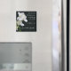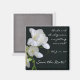 Uma imã de geladeira bonito 'Salve a Data' para você personalizar, com um spray de freesias brancas sobre fundo preto, a partir de uma fotografia de Judy Adamson