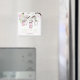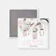 Imã salve a data Rosa e Mint Green Mason Jars Ilustrações brancas de marrom, pinks, jarras de mason verde-menta, flores e corações penduradas em uma árvore com duas aves de amor marrom cercadas por várias pinks, verde-menta e flores marrons. É perfeito para o verão, primavera e casamentos ao ar livre. com.